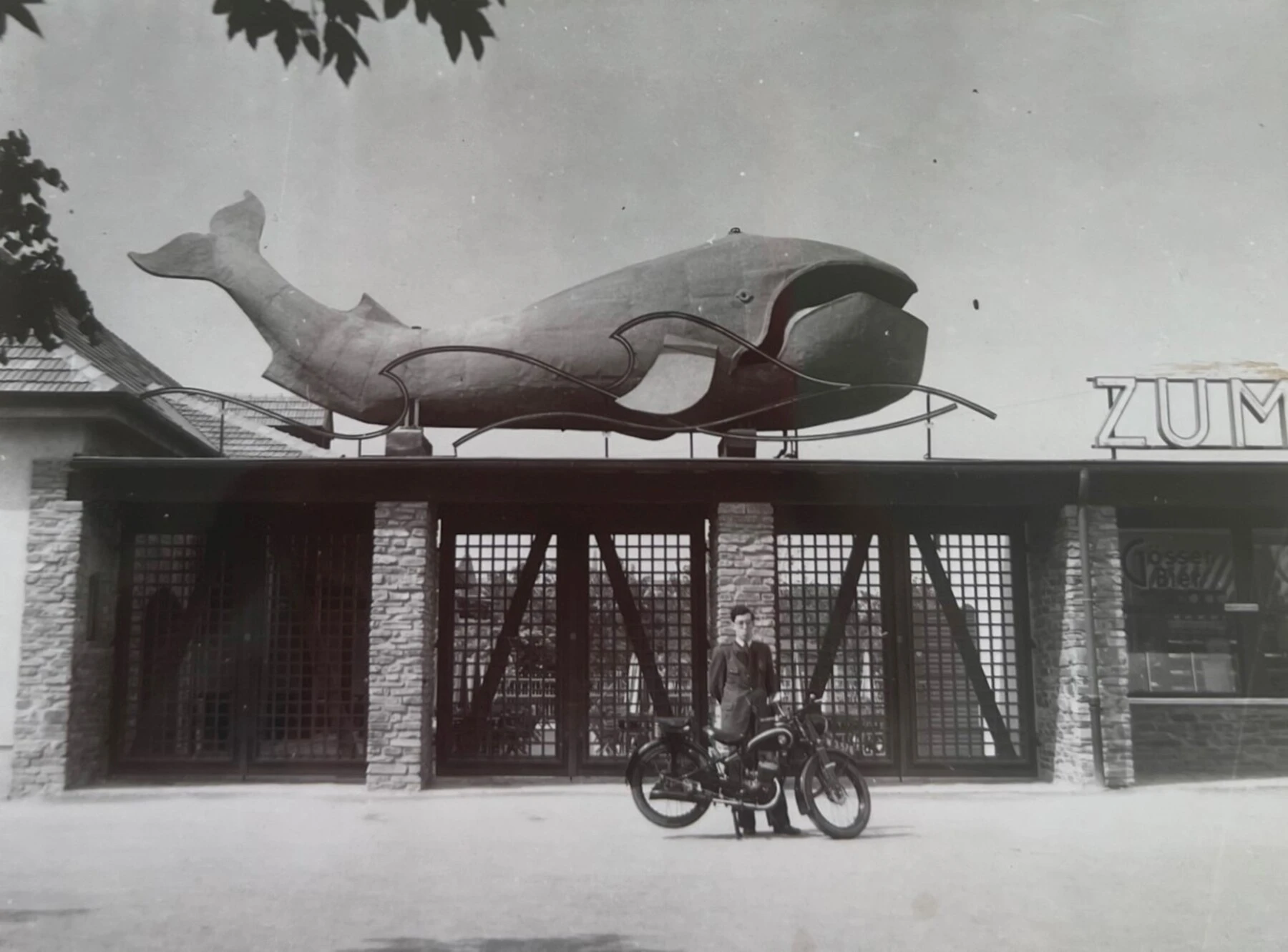 Ein Bild aus vergangenen Tagen: Der Praterwal am Restaurant "Zum Walfisch"